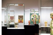 展覧会は、島根県出身の加藤泉による、大規模な回顧展。展覧会では、「人がた」と称される、人間のような、その幼生のような独自のモチーフの絵画で知られる加藤の絵画の変遷が時代を追って多数紹介されます。また、ソフトビニールやプラモデルを用いた立体作品、スケールの大きな木彫作品を中心とするインスタレーション、音楽活動やプロダクトなども紹介されました。見る人それぞれの感情を揺さぶる自由な表現は、ユーモアを伴いながら神話や土着性をも思わせる稀有な芸術世界でもあります。